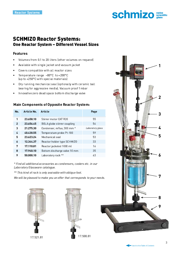 SCHMIZO Reactor systems provide a simple solution for lab and R&D related processes. The compact reactor size has a range from 100 ml to 20 liters.