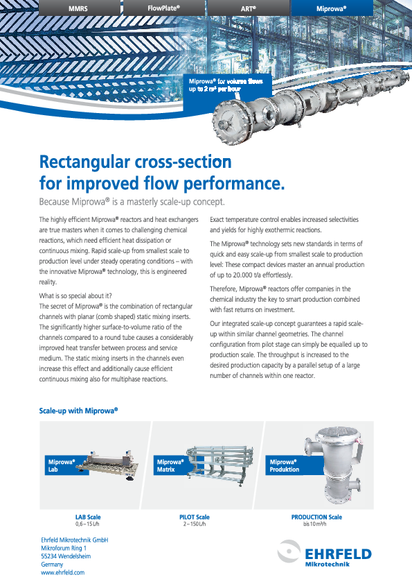 For more information about the Miprowa® - micro reactor, please visit the Ehrfeld website